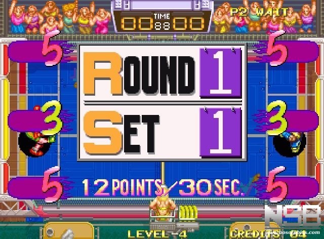 Existen seis personajes para escoger, cada uno con sus propias habilidades y un campo que se adapta mejor a dichas habilidades. Cada juego consiste en fragmentos de treinta segundos y el juego finaliza cuando uno de los contrincantes gana dos sets o la muerte súbita tras dos empates.