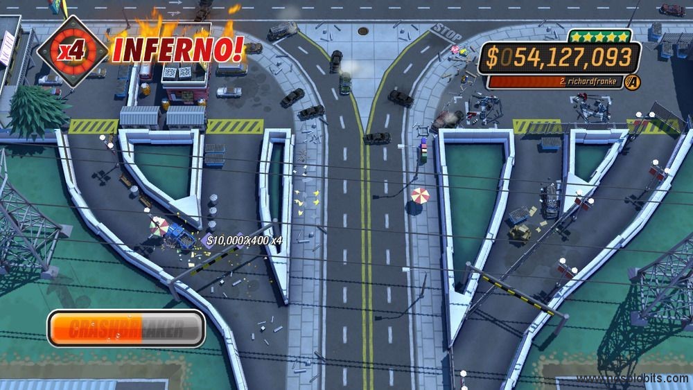 El objetivo de CRASH! es simple y directo, colisionar con todos los vehículos que podamos en un cruce. A diferencia de otros Burnout, la perspectiva del juego es aérea.