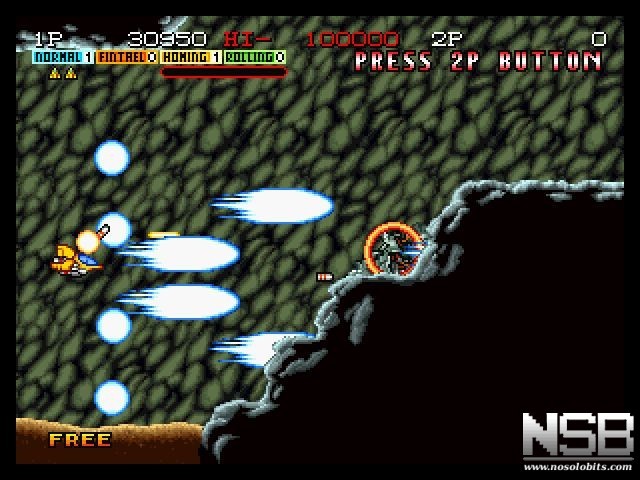 Shooter de scroll horizontal en el que combatirás a multitud de naves enemigas, pudiendo seleccionar las armas que portarás y mejorarlas. Están divididas en cuatro tipos: disparo, bomba, misil y unidad.