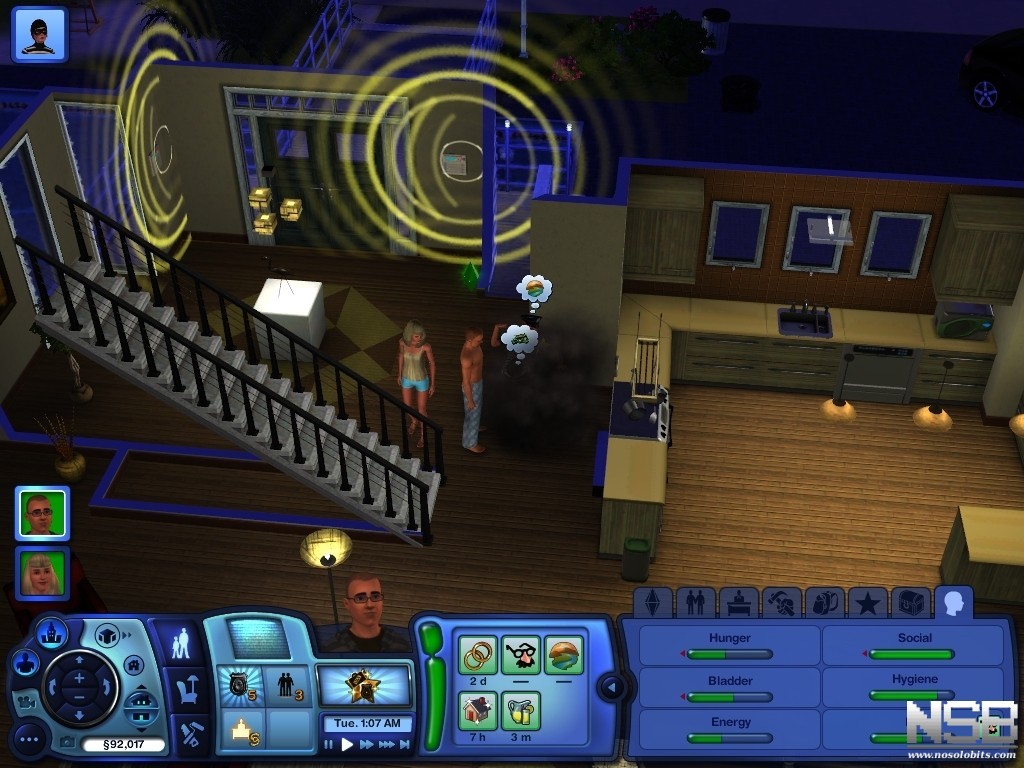 La otra componete del juego es el modo simulación, donde controlaremos a nuestros Sims para hacer que vivan lo mejor (o peor si somos retorcidos) posible. Para ello tendremos que decir que coman, que se bañen, que estudien y perfeccionen sus habilidades, que hagan amistad con otros sims, que progresen laboralmente y así un largo etcétera.