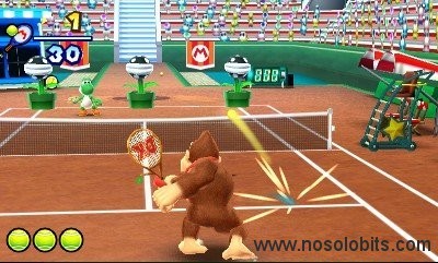 Super Mario Tennis: La otra mitad del campo estará plegada formando una pared donde se ve el juego Super Mario. Deberás golpear la pelota contra el escenario para ir avanzando y destruyendo los ladrillos y recogiendo los premios.