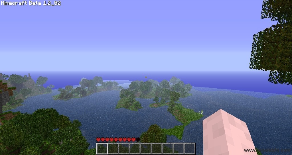 Los mapas de Minecraft son generados de forma procedural, creándose a medida que los exploramos. Podemos encontrar desde desiertos hasta zonas nevadas, pasando por bosques y lagos. El tiempo también es importante en el juego, habiéndo ciclo de día y noche. Por el día podemos ir tranquilamente encontrando distintos pacíficos animales, pero por la noche debemos de tener cuidado con los peligrosos enemigos que aparecen.
