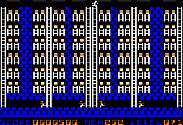 Como he comentado antes, la versión que conocía yo de pequeño fue la de NES, desarrollada por Hudson Soft y publicada en 1984. Esta versión tiene un aspecto más desenfadado que la versión original, además de unos personajes más grandes y con scroll de pantalla (los escenarios del título original se mostraban en una sola pantalla estática). Los enemigos en este caso son unos robots/ninjas muy parecidos a Bomberman, juego que Hudson había pubicado en 1983. Lo más curioso es que en el final de Bomberman de NES se muestra que gracias al jugador Bomberman ha conseguido volverse humano, convirtiéndose en Lode Runner y enlazando así ambos juegos.