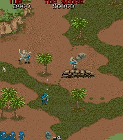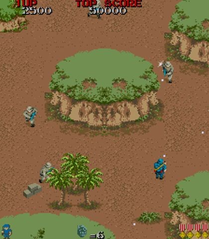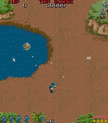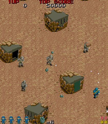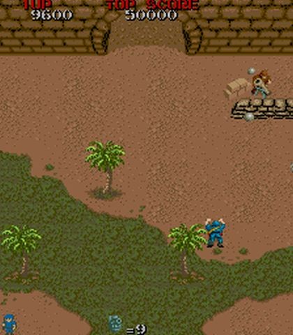 El control del juego era bastante sencillo, con el joystick podíamos movernos en las ocho direcciones y luego teníamos las dos acciones de disparar el rifle y lanzar una granada, ideales para acabar con un grupo de enemigos o con los vehículos. Una cosa a tener muy en cuenta es que nuestro rifle tiene alcance limitado, por lo que nuestras balas no atravesarán la pantalla.