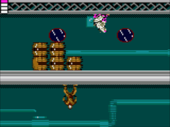 En cuanto a los enemigos, no son excesivamente variados, pero en cada escenario encontramos enemigos característicos de ese escenario. Tenemos que enfrentarnos a típicos ninjas, soldados que salen desde las profundidades de un río o enemigos que nos atacarán como si fueran el erizo Sonic. Cada uno tiene su patrón de ataque y su zona de aparición, así que debemos dominar estos aspectos para poder contrarrestarlos. No es un juego fácil, pero con un poco de práctica podemos completarlo sin problema.