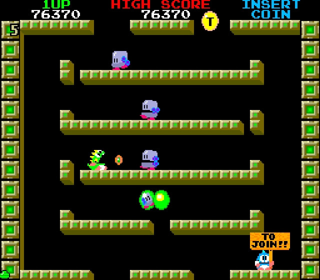 El juego de hoy es muy probablemente uno de los más famosos de la década de los 80, y el cual muchos de vosotros recordaréis: Bubble Bobble. Lo que primero se viene a la cabeza al pensar en este título son sus simpáticos protagonistas, dos adorables dragoncitos que escupen burbujas. Pero este juego ofrece mucho más, como veremos a continuación.