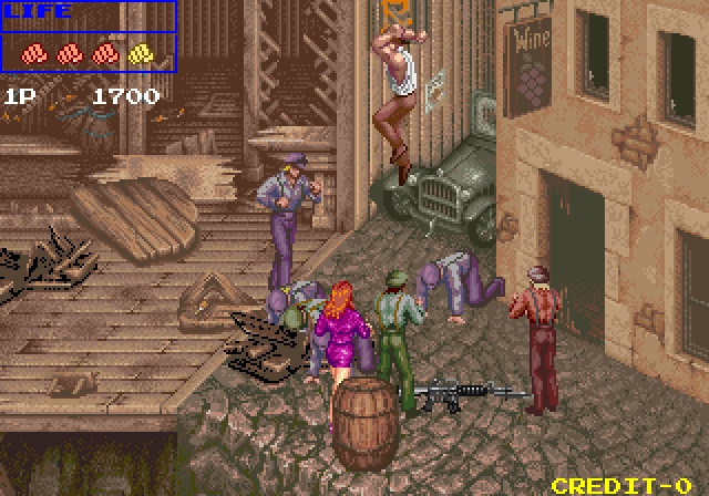El juego consiste en 8 pantallas diferentes, de las cuales 1 de ellas es de bonus. Los escenarios son bastante variados, y van desde la ciudad de inicio hasta la guarida de los cazadores, pasando por un tren, un barco e incluso una caverna. En cambio, los enemigos se repiten bastante, siendo unos pocos tipos con diferentes patrones de colores. Entre ellos llaman la atención unas mujeres con minifalda y chaqueta, que nos lanzarán granadas sin cesar. Por supuesto, al final de cada nivel hay que enfrentarse a un jefe que nos pondrá en más de un aprieto.