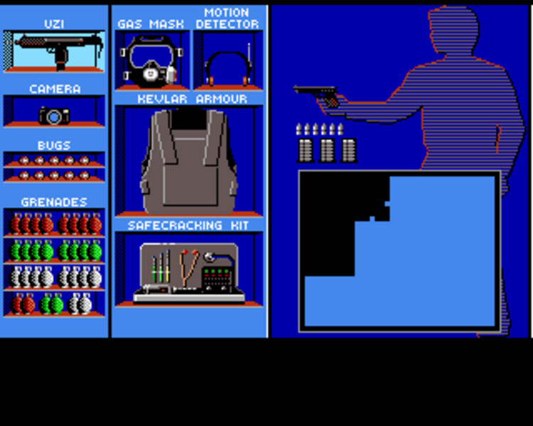Como hemos comentado anteriormente, el juego es una especie de simulador de espías, mezclado con varios minijuegos que iremos explicando. Lo primero que haremos será escoger si queremos el personaje masculino o femenino. Tras una breve charla con nuestro jefe, nos enseñará un conjunto de fotos y nos pedirá que reconozcamos al criminal, diciéndonos su nombre, una forma bastante original de meter la protección anticopia.