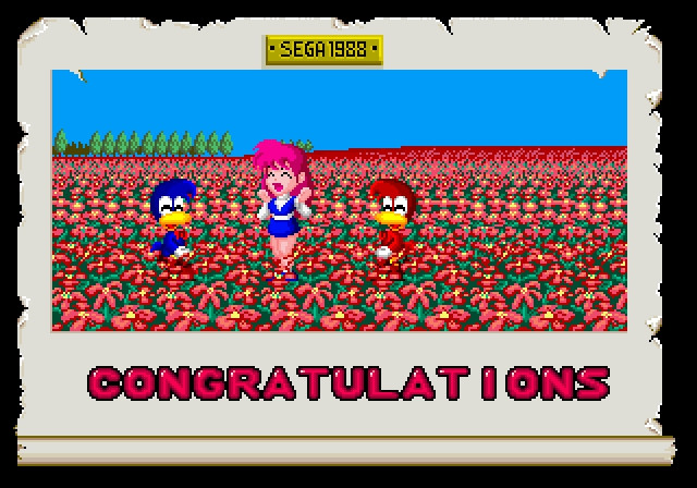 Tanto a mitad de la mayoría de niveles como al final de estos, encontramos a un jefe que pondrá nuestro nivel a prueba. A mi parecer, este el punto en el que el juego flojea más. El gran tamaño de los jefes es realmente impresionante, pero a la mayoría les falta carisma, y más si los comparamos con los hilarantes enemigos a los que nos enfrentamos a lo largo de los niveles. Además, hay unos cuantos de ellos que se repiten entre niveles. Por si fuera poco, el jefe final del juego es realmente horroroso, y encima su primera forma es una variante de un jefe al que nos enfrentamos en un nivel anterior. En la versión Master System es un jefe final diferente, ganando bastante con el cambio.