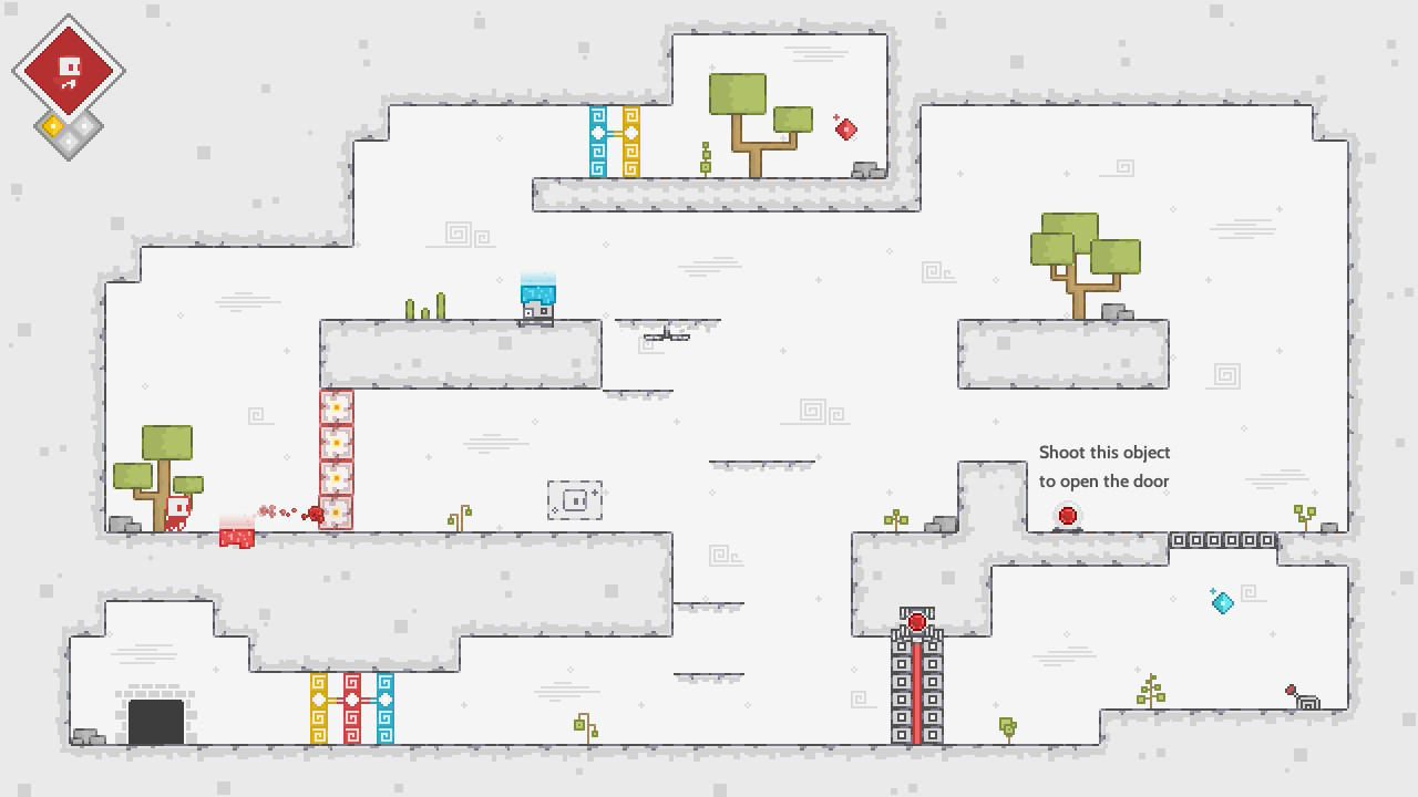 El juego está compuesto por un total de 40 niveles de pantalla única (sin scroll) con una curva de dificultad bastante bien ajustada. Empezamos la partida con puzzles sencillitos, pero a medida que avanzamos se irán haciendo más complicados que nos harán pensar y probar un buen rato. El adorable protagonista tiene la habilidad de absorber poderes de los colores que hay pintados en el suelo de los niveles, y cada color le otorga un poder diferente, pudiendo solamente tener un color equipado. Por ejemplo el azul le otorga doble salto, el amarillo un "dash" y el rojo le permite disparar proyectiles. Además, también puede arrastrar cajas y otros objetos para colocarlos allá donde convenga y usar palancas para abrir puertas y trampillas. El objetivo de cada nivel es llegar a la salida haciendo uso de estos poderes. Según el tipo de nivel tendremos que recoger ciertas joyas que desbloquearán la puerta de salida del nivel o bien atravesar la puerta del nivel mientras tenemos equipados cada uno de los colores. En general es bastante relajante, podemos tomarnos el tiempo que necesitemos para pensar y no son necesario unos reflejos felinos para superar los desafíos.
