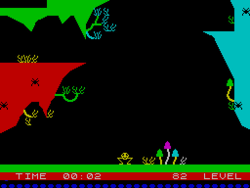 Nos ponemos a los mandos de una simpática pulga que llega al planeta Cebolla-7 a bordo de una nave. Nuestro objetivo es conseguir salir del planeta, dando saltos hasta encontrar la salida. ¿Parece fácil, no? Pues no lo es tanto. Antes de seguir, he escuchado en varios lugares que el factor fundamental del juego, los saltos de la pulga, se le ocurrió al ya citado Paco Suárez mientras hacía pruebas con un algoritmo para describir una parábola. No sé que de cierto hay en eso, pero ahí queda.