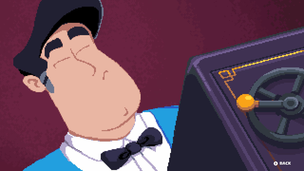Si hay algo que llama la atención a primera vista de Loco Motive es su impecable apartado gráfico. No solo goza de un pixel art exquisito que muestra un mundo lleno de detalles, sino que también se mueve a las mil maravillas con unas animaciones excelentes dignas de una película de animación. Una cosa que me ha encantado es que la gran mayoría de acciones están perfectamente animadas, incluso cuando mezclamos objetos de nuestro inventario. Además, en algunos momentos hay ilustraciones haciendo zoom sobre algunas acciones, las cuales son también dignas de ver. Un detalle curioso es que podemos activar el "modo noir" que hará que el juego se vea en blanco y negro. Al estupendo apartado gráfico se le suma una actuación de voz en inglés de una grandísima calidad y una excelente y variada música Jazz compuesta por Paul Zimmermann (Wildfrost, Space Haven).
