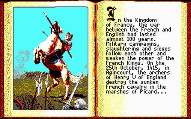 Desde un primer momento, está patente la fidelidad histórica con la que se trató de hacer el juego y la cantidad de opciones que tenía para la época. Empiezas con un pequeño ejército liderado por el futuro Carlos VII, Delfín de Francia allá por el 1417, que tiene como primer objetivo marchar hacia Réims, donde le espera Juana.