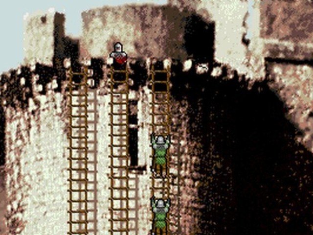La primera consistiría en desplazar nuestros ejércitos hacia territorios hostiles y emprender conquistas o bien defender nuestras posesiones. La fase de asalto a un castillo estaría dividida en dos partes: en primera instancia deberás cruzar el puente levadizo del castillo pasando por la espada a todo soldado que te salga al paso, y la segunda parte deberás coronar una torre subiendo por escaleras de asalto, rechazando con tu brazo las piedras que te tiren los soldados defensores desde la parte superior, o saltando a otra escalera si te lanzan aceite hirviendo.