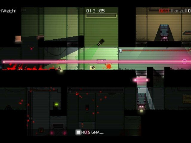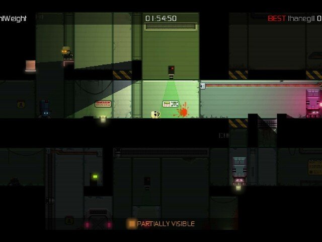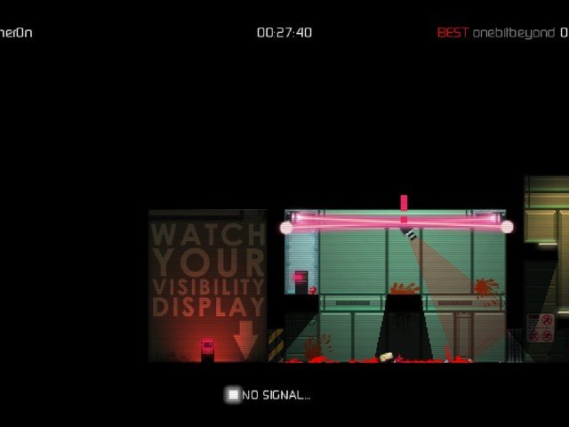 Si somos detectados por los robots no habrá piedad para nosotros. Un gran rayo láser hará que nuestro muñequito salte en pedazos, dejando mucha sangre salpicada por el escenario. Los niveles tienen varios checkpoints, así que no tendremos que rejugar todo el nivel cada vez que nos maten.