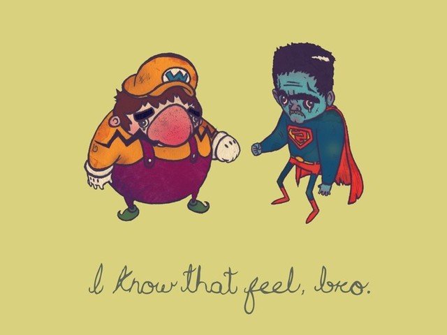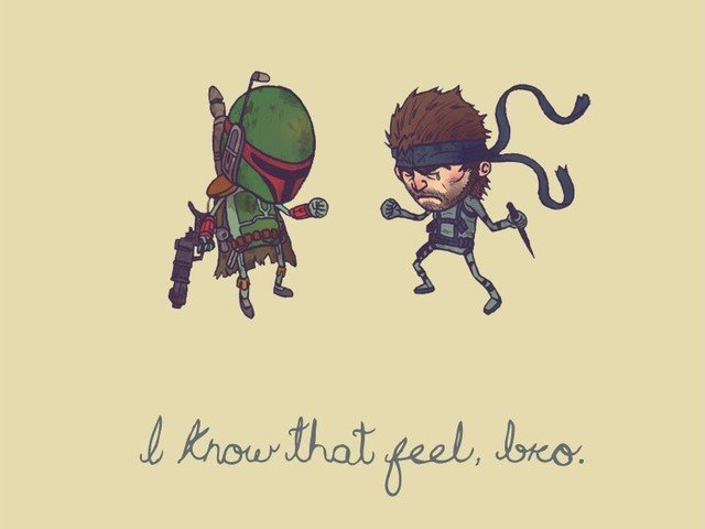 El artista Chris Gerringer ha creado unas ilustraciones muy conseguidas donde 2 personajes empatizan con la frase "Conozco ese sentimiento, hermano". Que tienen en común Boba Fett y Solid Snake? Ambos son clones; y Wario y Bizarro? Versiones malvadas de Super Mario y Superman, respectivamente.