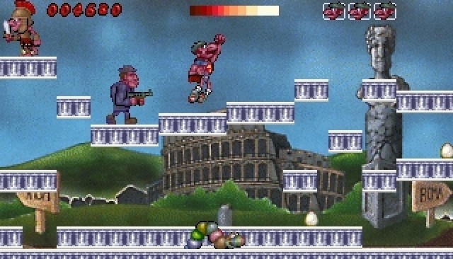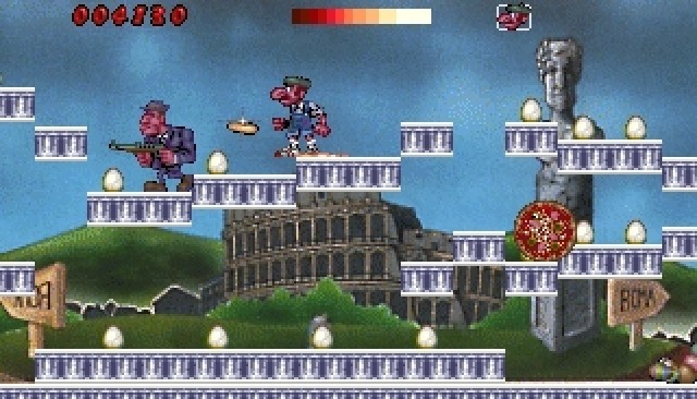 Durante los escenarios veremos referencias y tópicos de las zonas que visitemos. Por ejemplo, en Italia los enemigos serán soldados romanos y mafiosos (buena combinación). Además, hace referencia a películas, encontrando personajes como Superman, Tarzán, Indiana Jones o Star Wars.
