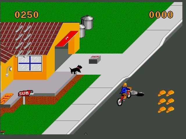 Como siempre, si es posible me gusta añadir una curiosidad. En una de las versiones arcade, el control de la máquina consistía en un manillar de bicicleta, con dos botones a los lados para lanzar los periódicos. Si empujábamos el manillar hacia adelante, acelerábamos, si lo tirábamos hacia atrás, frenábamos.