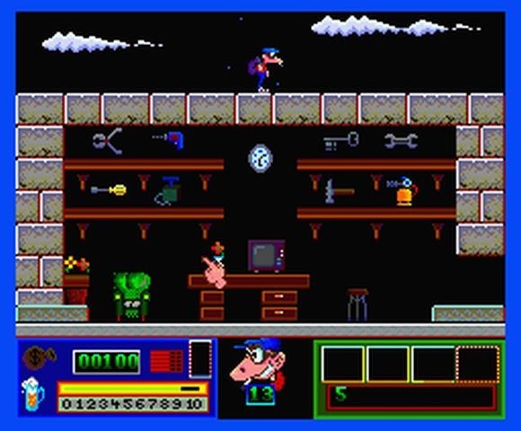 Pero además de dichos objetos, Goody necesitará los 13 cilindros que contienen la clave para abrir la caja fuerte del banco. También dispondremos de una escalera para llegar a sitios que con un simple salto no podríamos.