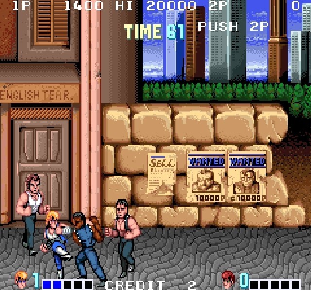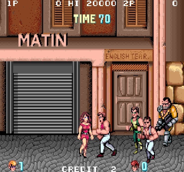 El juego está dividido en 4 escenarios diferentes: el barrio bajo de la ciudad, una fábrica, los bosques y la guarida de la banda, cada una con muchos enemigos y un jefe final que nos pondrá las cosas difíciles. Para pasarnos estas fases tenemos un número limitado de vidas, si nos matan deberemos gastar un "continue" (que en su época se traducía en dejarse una moneda más).