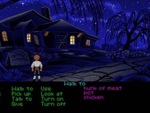 La mecánica del juego es muy similar a la que se hizo popular en aquellos años. Un menú inferior donde disponíamos de nuestro inventario y las acciones a realizar. Por otra parte los importantes diálogos con los personajes, por una parte por la trama, y otras simplemente para arrancarnos una sonrisa. Y como en toda aventura que se precie, utilizar nuestro ingenio para avanzar. Hay un momento que todos recordarán, utilizar el pollo polea en un cable para poder ir a la casa de MeatHook.