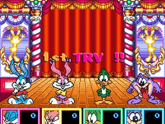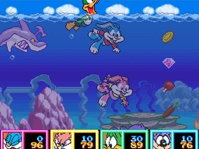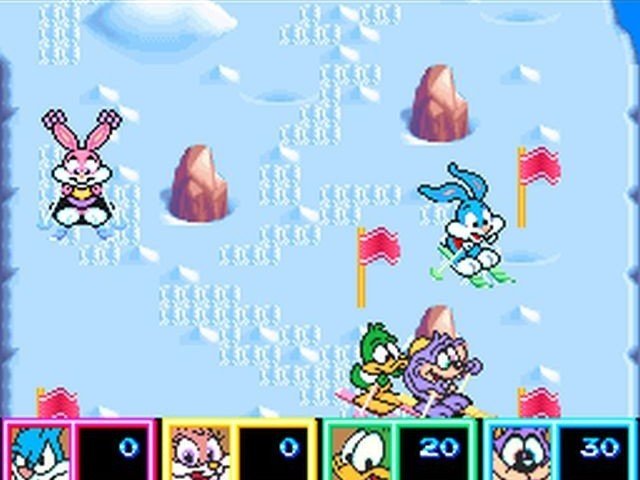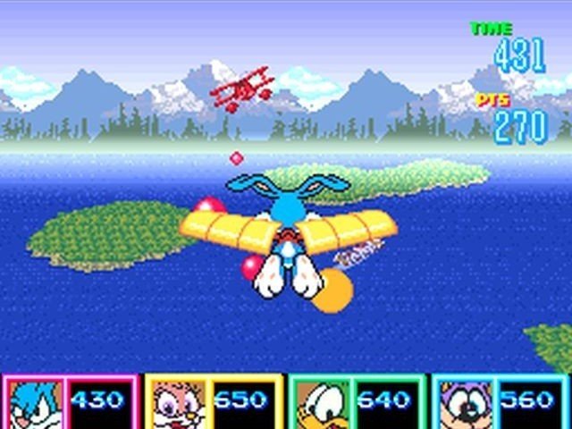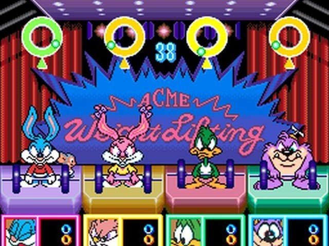 Como personajes podemos elegir a Buster Bunny, Babs Bunny, Plucky Duck, y Dizzy Devil. Todos los personajes tienen las mismas características, así que el resultado en las pruebas depende totalmente de nuestra habilidad. Hay 4 niveles de dificultad, y cada uno dispone de entre 6 y 7 eventos en los que competir. Las pruebas son muy variadas: Ski, carrera de obstáculos, lanzamiento de disco y levantamiento de peso son algunas de ellas. Por supuesto, todas ellas con un toque del universo Tiny Toon, así que no esperéis ver pruebas normales y realistas, de hecho, encontraréis todo lo contrario.